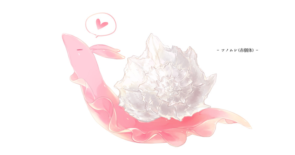 角のような触手を二本頭から生やしており、貝を背負ったウミウシやカタツムリに似た生き物。